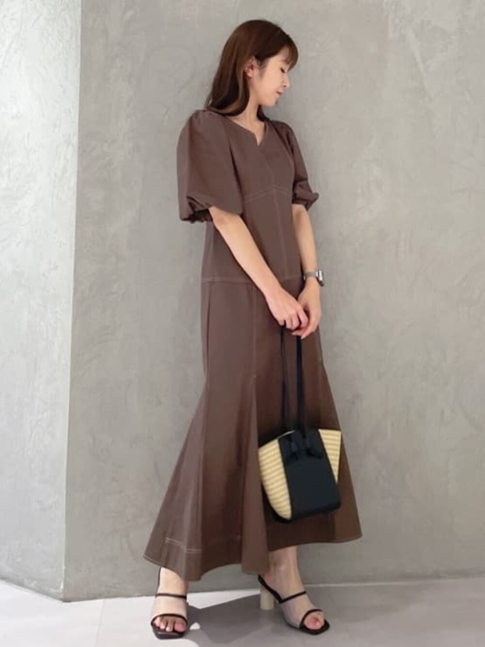kaho (MERCURYDUO)のワンピース「ステッチ切替ボリュームスリーブワンピース」を使ったコーディネート