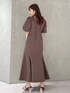 チョコレートカラーが大人フェミニンで可愛いワンピコーデ!(ワンピース)胸下切り替えなので一枚でスタイルアップして見えるデザインです。身長151センチSサイズ着用。足首下の丈感です。ヒール合わせがオススメです!ウエストがスッキリ見えるデザインなのでデニムワンピースでも子供っぽくみえません!