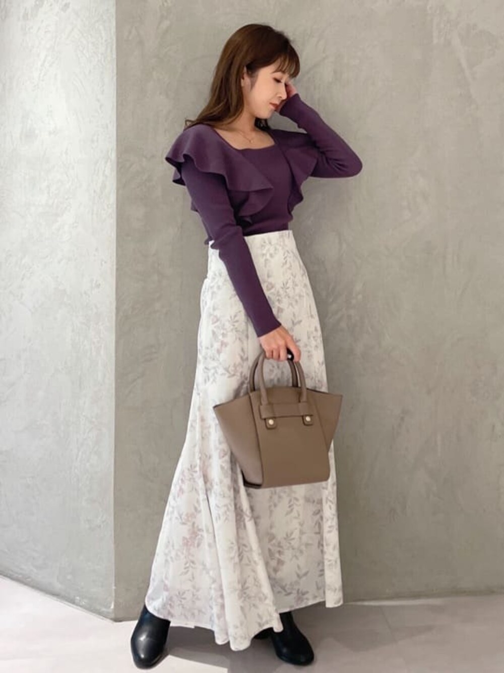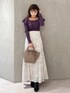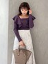 大人フェミニンなカラーコーデ♡ (スカート)腰回りにフィット感のあるマーメイドスカートでスタイルアップ効果抜群!身長151センチMサイズ着用。足首下の丈感です。小柄な方はヒール合わせがおすすめです! (トップス)定番ラッフルニット秋バージョン入荷しました!前後2wayデザインです!首の開きはインナーが見えないくらいの開きです!