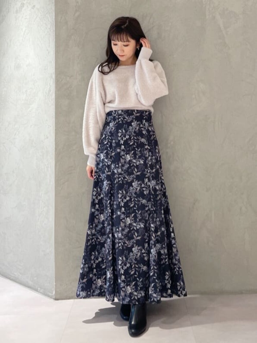 大人可愛いフェミニンコーデ♡ (ニット)前後2wayで着ていただけます。クルーネックを前にして着てみました!シャギーの毛足は短いので着膨れせずに着れます!(スカート)身長151センチSサイズ着用。足首くらいの丈感です。ハイウエストデザインなので腰回りがスッキリ見えます!裏地付きのスカートです!