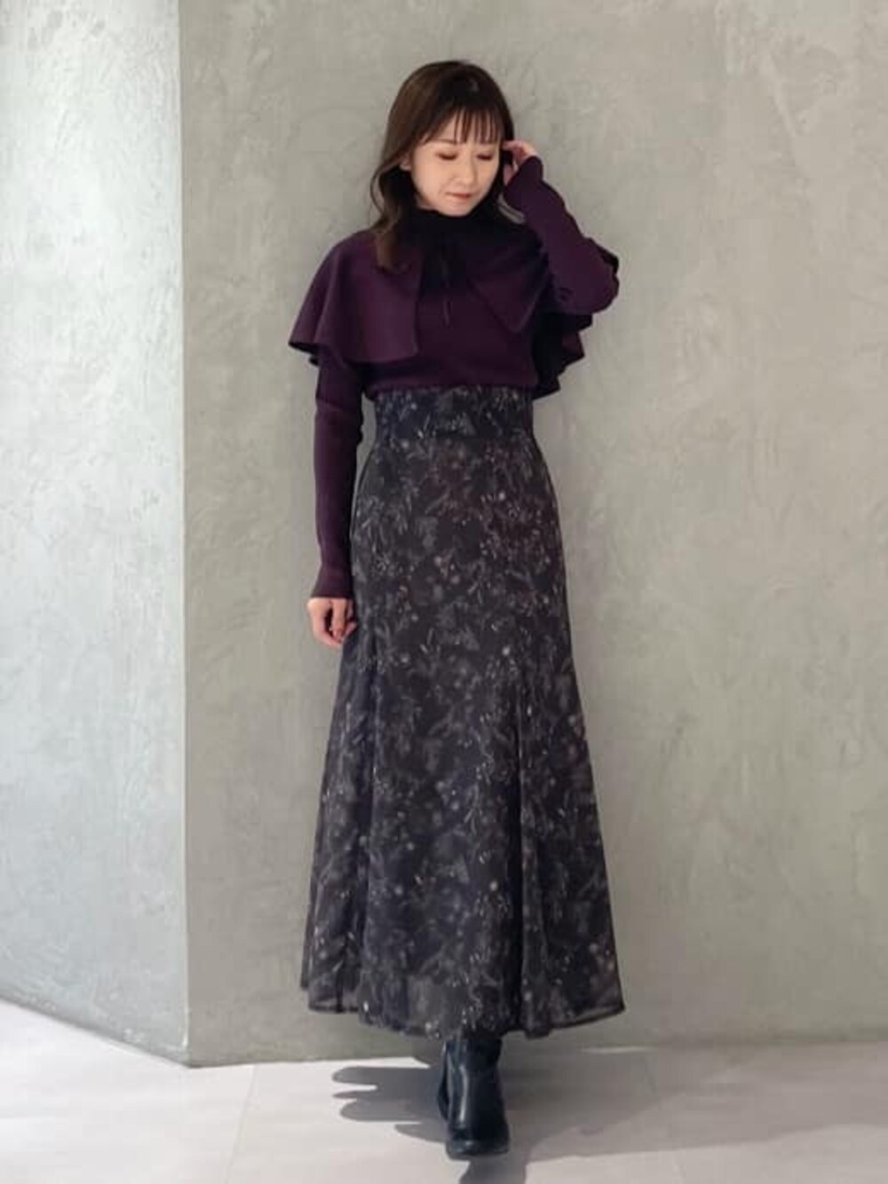 大人可愛いダークカラーコーデ!(トップス)ケープ付きのトレンドニット!ケープは取り外しできるのでシンプルにも着ていただけます!少し赤混じりの茶色です!モチモチと柔らかい素材のニットなので着心地も抜群◎ (スカート)身長151センチSサイズ着用。足首上の丈感です。ハイウエストデザインなので腰回りがスッキリ見えます!裏地付きのスカートです!