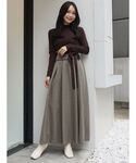 kaho (MERCURYDUO)のワンピース「ニットドッキングギャザーフレアワンピース」を使ったコーディネート