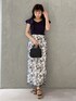 大人可愛いスタイルアップコーデ♡ (スカート)身長151センチMサイズ着用。足首下の丈感です。ゴムの入っていないスカートなのでウエストラインがスッキリ見えます!チュールに柄が入っているので光に当たるとキラキラとても華やかです。オフィスシーンにもオススメ◎(サンダル)足幅広目23.5センチ38サイズ着用してますが通常36でも問題なさそうです (ニット)定番ラッフルニットは今年は少しフリルが大きくさらにに二の腕がスッキリみえるデザインになりました!短丈でトップスインしやすい形のキレイなニットです!