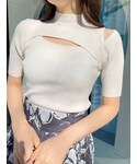 リール着用!ivory✖️ice buleコーデ♡ (ニット)前後2wayで着ていただけるデザインです!胸の開きはインナーの見えが気にならないくらいの開きです!少しくすんだアイボリーカラーなので肌馴染みもよく着ていただけます!(スカート)身長151センチMサイズ着用。足首下の丈感です。ハイウエストデザインなので脚長効果抜群!腰が広がらないセミフレアシルエットでスタイルキレイに見えます! (サンダル)足幅広め23.5センチ締め付け感なく楽に長時間履けました!