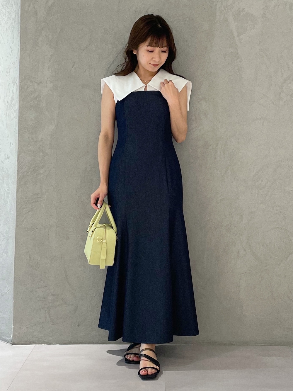 kaho (MERCURYDUO)のワンピース「シャツドッキング配色ノースリワンピース」を使ったコーディネート