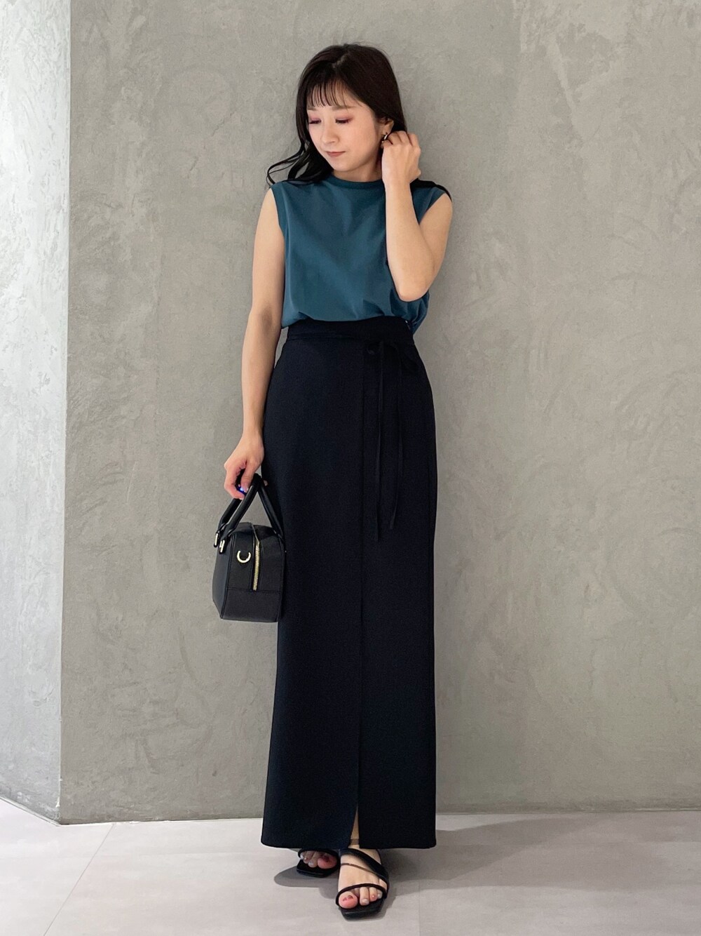 リール着用♡グリーン×ブラックの大人カジュアルコーデ!(カットソー)チャンピョン別注カットソーはマーキュリーオリジナルのロゴでカットソーでもラフに見えすぎません♡フレンチスリーブデザインなので二の腕もスッキリ見えます!(スカート)ややタイトめなスカートです。ウエストゴムなので履き心地楽ちん!身長151センチMサイズ着用。足首下の丈感です。サラッとした素材のスカートなので夏でも涼しげに履いていただけます!(サンダル)足幅広め23.5センチ。幅広でも締め付け感なく楽に履けました。