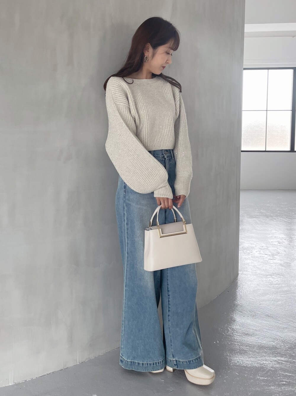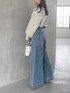 私の推しニット❤️ 大人カジュアルコーデ✨ *ニット 前後2wayできていただけるニットカーディガンです!スパンコールが散りばめられているのでキラキラ一枚で華やかな雰囲気に♡チクチクせずに着ることができたので着心地も⚪︎ *デニム トレンドワイドデニムパンツ! 身長151センチMサイズ着用。足首下ギリギリなのでヒール合わせがオススメです!ハイウエストデザインで腰回りがスッキリ見えるのでラフに見えすぎません! ニットやブラウス合わせがオススメ♡ *ブーツ 足幅広め23.5センチ36サイズで締め付け感なく楽に履けました。ヒールも太く安定感があるので一日履いても疲れません!