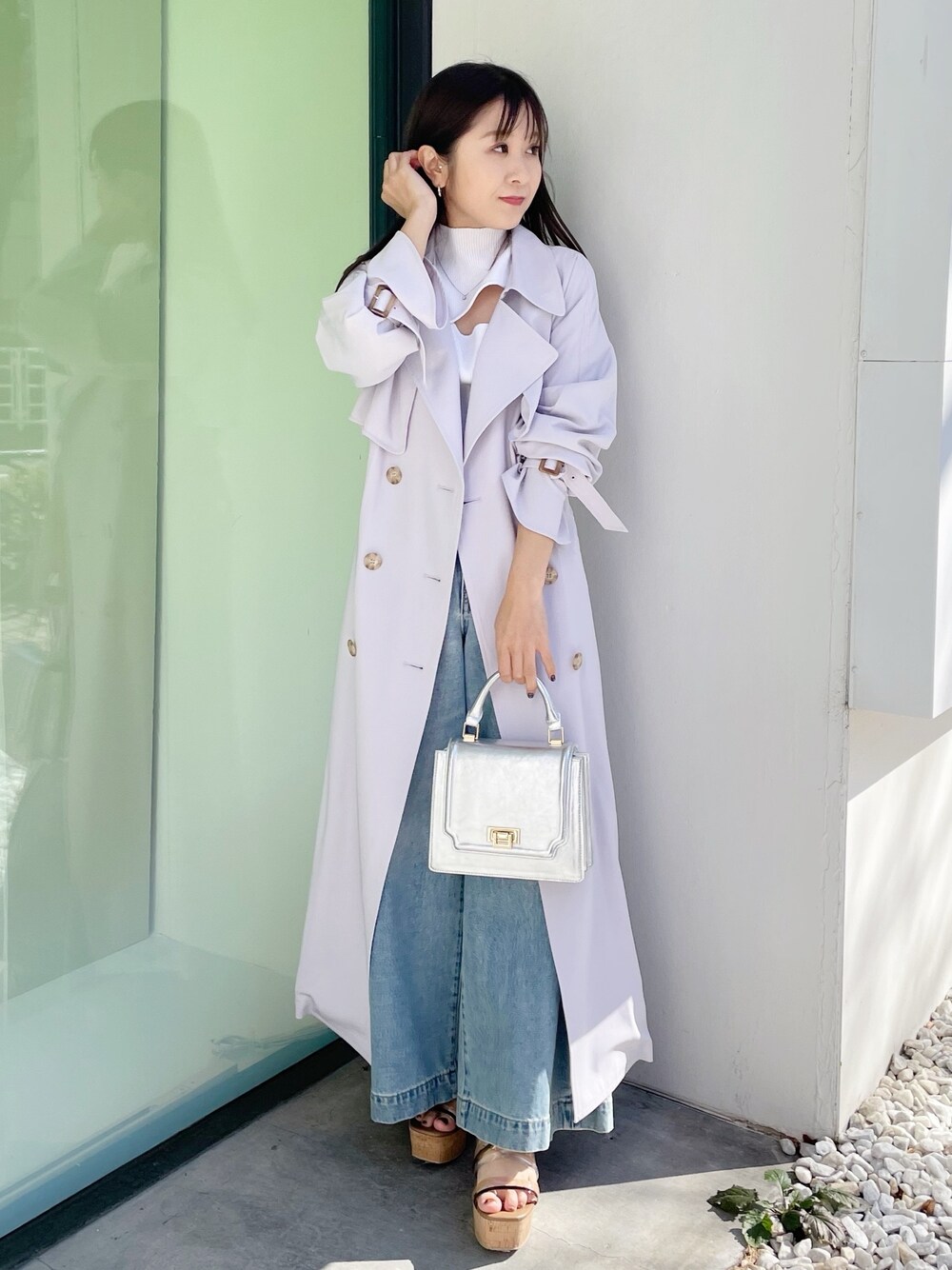大人可愛い春のカラーコーデ❤️ *トレンチコート 身長151センチMサイズ着用。足首下の丈感です。柔らかいとろみのある素材なのでかっちりせず楽に羽織れる春コートです。シンプルデザインなのでオンオフ両方で使いやすいです! *ニット 前後2wayできていただけるパワショルニットは肩の異素材生地が柔らかいので肩が張って見えすぎません!フェミニンな雰囲気のトップスなのでボトムスはカジュアルデザインかスタイリッシュなボトムスと合わせるのがおすすめです! *デニム トレンドワイドデニムパンツ! 身長151センチMサイズ着用。足首下ギリギリなのでヒール合わせがオススメです!ハイウエストデザインで腰回りがスッキリ見えるのでラフに見えすぎません! ニットやブラウス合わせがオススメ♡