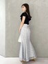ブルー✖️ブラックの爽やかコーデ❤️ *ニット 毎年定番の大人気ニットは今年はデザインチェンジで再登場✨フリルが少し大きめで胸の開きはインナーが見えないくらいの開きです!コンパクトデザインでボディラインがキュッと見えます! *スカート 身長151センチMサイズ着用。足首下の丈感です。シャリ感のあるツイード生地なので春夏っぽく涼しげな雰囲気のスカートです!ウエストはレースアップデザインなので自分で調節可能です! *シューズ 足幅広め23.5センチ36サイズでちょうどよく履けます。ヒールは高めですが傾斜が緩やかなので一日履いても疲れません!