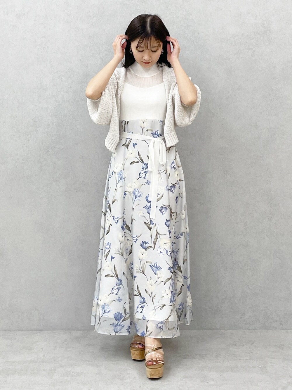 夏のオールホワイトコーデ❤️ *ワンピース 身長151センチMサイズ着用。足首くらいの丈感です。胸下切り替えのワンピースなので着るだけでスタイルアップして見えます!トップスのニット生地はシャリ感のある素材なので夏もサラッと着れますよ! この夏イチオシのワンピースです✨ *カーディガン 少しラメの入ったシャリ感のある素材のカーディガンです!短丈なのでハイウエストデザインのワンピースとの相性◎袖は少しゆとりがあるのでゆったり着ていただけます。 *シューズ 足幅広め23.5センチ36サイズでちょうどよく履けます。ヒールは高めですが傾斜が緩やかなので一日履いても疲れません!