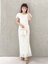 大人可愛いオールホワイトコーデ✨ *ニット 大人気のラッフルニットのニューシリーズ!袖がレースアップになっているので横から見た時の半身がとてもオシャレ見えします!首元の開きは少し広めなので気になる方はインナーを着ていただくのがオススメです! *スカート 身長151センチMサイズ足首下の丈感です。ウエストはレースアップなのでお好みで調節できます!光沢感のない柔らかい素材のレーススカートなので合わせるもの次第でオンオフ着回せます! *シューズ 足幅広め23.5センチ36サイズでちょうどよく履けます。ローヒールで傾斜も緩やかなのでとても履きやすいです!