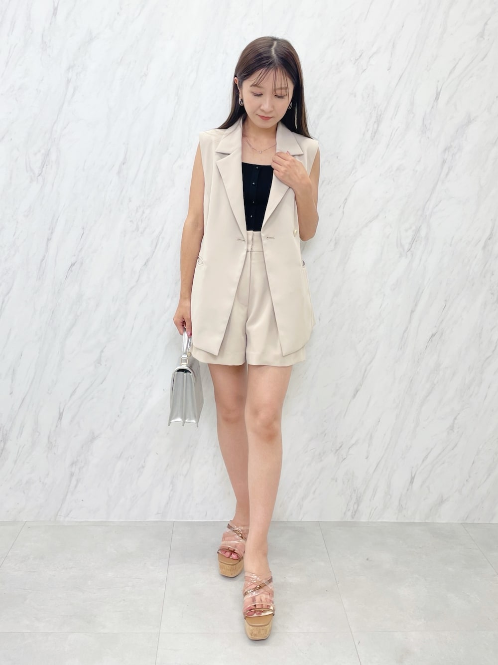 リール着用❤️ ジレベスト着回し✨ *ジレベスト 身長151センチMサイズ着用。ゆるっと着たい方はMサイズがおすすめ!お尻が隠れるくらいの丈感です。 *ショートパンツ 裾が広がったスカート見えするようなデザインなので足のラインが綺麗に見えます! *シューズ 足幅広め23.5センチ36サイズでちょうどよく履けます。ヒールは高めですが傾斜が緩やかなので一日履いても疲れません!