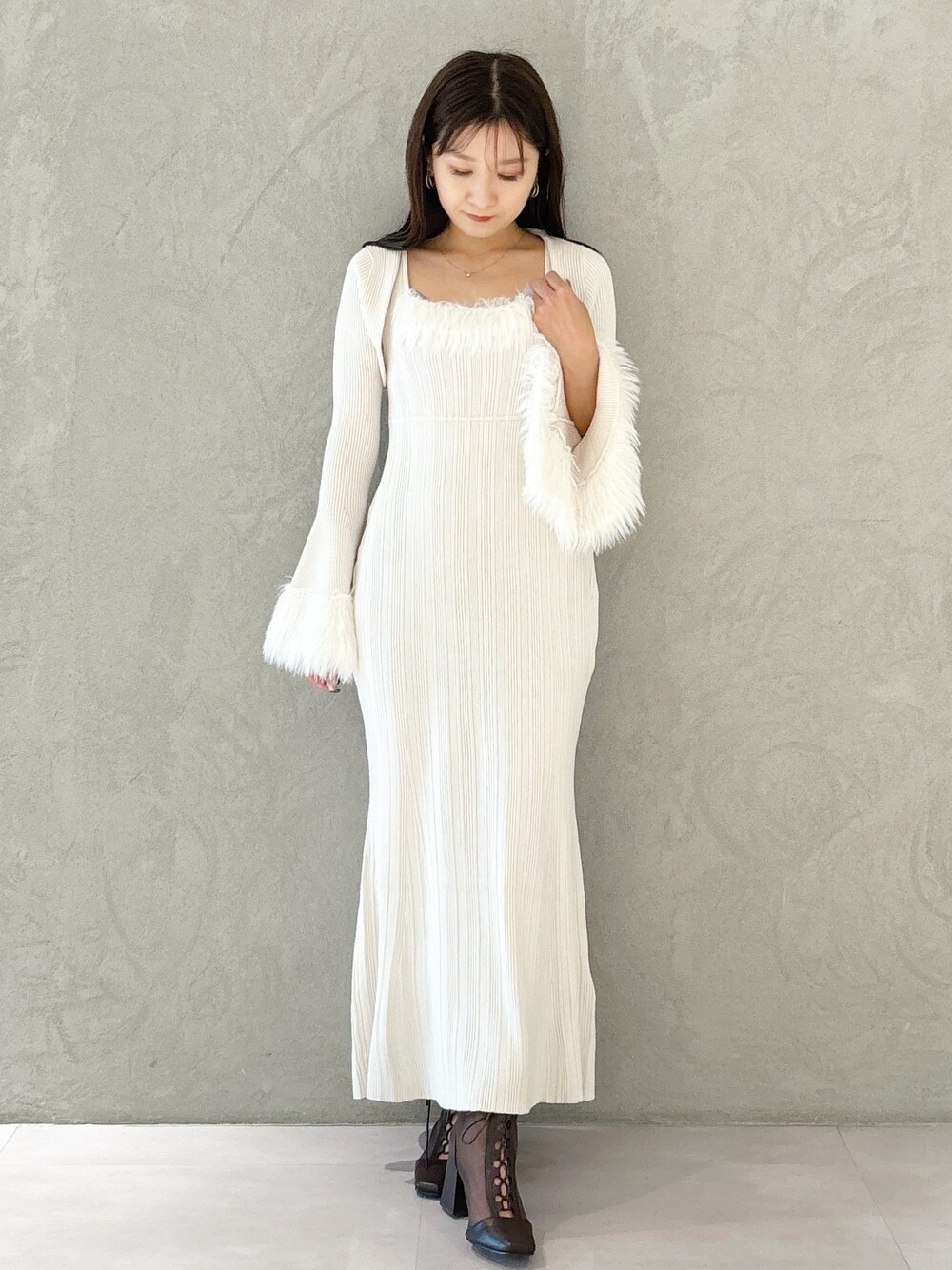 デートに着たい! 大人フェミニンなワンピースコーデ✨ *ワンピース 身長151センチMサイズ着用。足首くらいの丈感です。ボレロとセットのワンピースなので着回し自在✨ワンピースはリブニット素材なのでボディラインを拾いすぎずスッキリきれます!!!