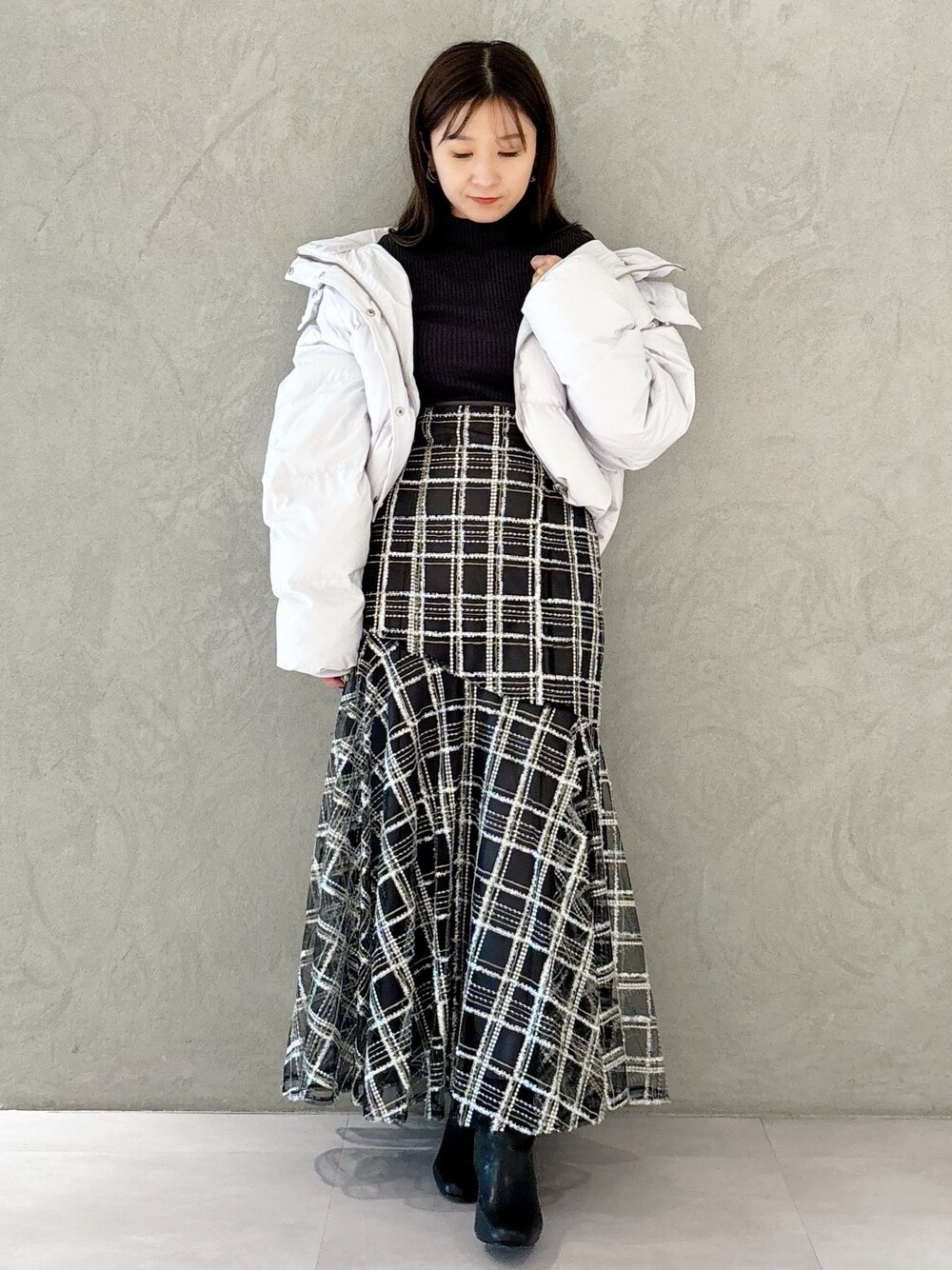 kaho (MERCURYDUO)のスカート「シアーチェックマーメイドレースアップスカート」を使ったコーディネート