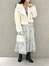 kaho (MERCURYDUO)のワンピース「バックレースアップボタンニットドッキング花柄ワンピース」を使ったコーディネート