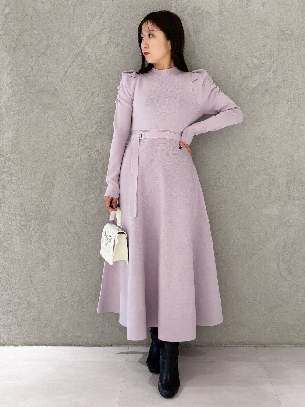 スタイルアップみえするイチオシのワンピースです❤️ *ワンピース 身長151センチMサイズ着用。足首下の丈感です。ハイゲージ素材のフレアニットワンピースなのでボディラインがキュッとくびれてスタイルアップして見える一枚に!ちょっとしたお呼ばれ、食事会にぴったりなきれいめワンピースです! *シューズ 足幅広め23.5センチですが締め付け感なく楽に履けました!