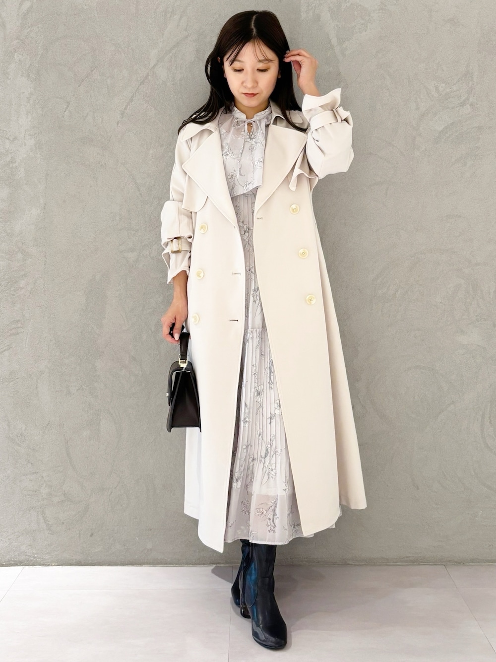 大人かわいい春のデートコーデ❤️ *ワンピース 身長151センチMサイズ着用。足首下の丈感です。プリーツデザインなので広がりすぎません!ウエストスッキリ見えする胸下切り替えのデザインです✨モノトーン花柄のデザインなので甘くなりすぎない大人っぽい花柄ワンピースです! *トレンチコート 毎年大人気のトレンチコートは今年は可愛いパステルカラーで再登場!ケープも大きすぎないので肩幅もスッキリ見えします!テロっとした素材の軽いトレンチコートなのでとても羽織り安くオンオフ両方使いやすいです! *シューズ 足幅広め23.5センチ36サイズで締め付け感なく楽に履けました!ヒールが太いので1日履いても痛くならずに履けました!