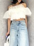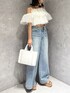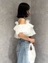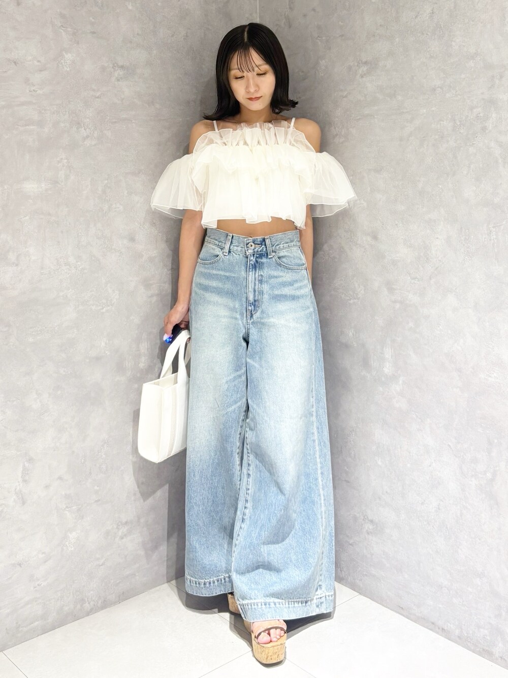 大人かわいいデニムコーデ🩷 *ブラウス チュールがたっぷりのあざといブラウス!短丈ブラウスなのでハイウエストのボトムス、スカートで合わせていただくのがおすすめ!着るだけで可愛らしさがUPします❤️ *デニム ハイウエストのワイドパンツなので脚長効果がありスタイルが盛れます! *シューズ 足幅広め23.5センチ。締め付け感なく楽に履けます。ヒールは高いですが傾斜が緩やかなので長時間はいても疲れません!