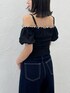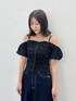 リール着用❤️ 大人かわいいデニムコーデ✨ ※トップス 2wayデザインのギャザーニットは夏っぽいサラッと素材で着心地◎ *デニム ハイウエストのワイドパンツなので脚長効果がありスタイルが盛れます! *シューズ 足幅広め23.5センチ。締め付け感なく楽に履け ます。ヒールは高いですが傾斜が緩やかなので長時間はいても疲れません!
