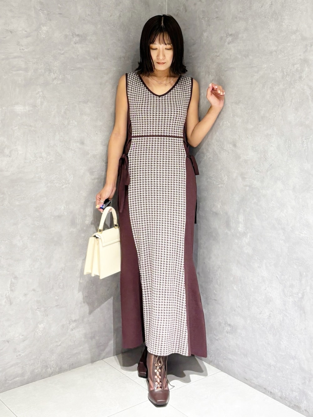kaho (MERCURYDUO)のワンピース「千鳥柄サイドレースアップニットワンピース」を使ったコーディネート