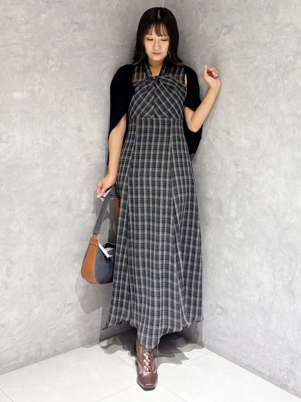 kaho (MERCURYDUO)のワンピース「ツイストネックチェック柄ワンピース」を使ったコーディネート