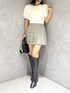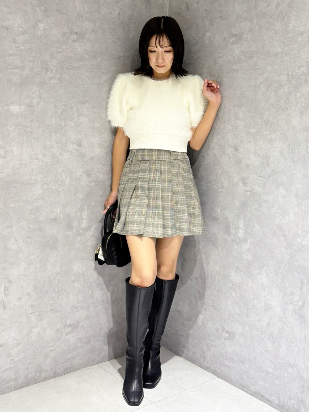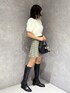 大人かわいい秋のミニ丈コーデ❤️ *ニット 短丈のふわふわニットわ肌触りがよくチクチクせずに着れました。裾はリブになっているのでトップスアウトで着ても◎ *ボトムス スカート見えのパンツなので履きやすさ◎ *シューズ フィット感のあるロングブーツで足のラインが綺麗に見えます!