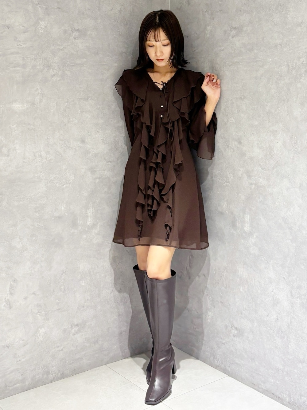 kaho (MERCURYDUO)のワンピース「ラッフルフリルミニワンピース」を使ったコーディネート