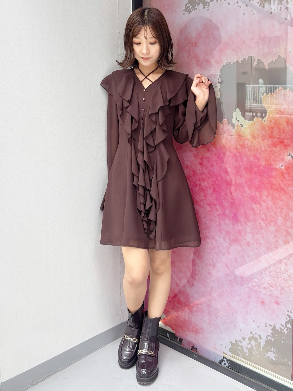 kaho (MERCURYDUO)のワンピース「ラッフルフリルミニワンピース」を使ったコーディネート