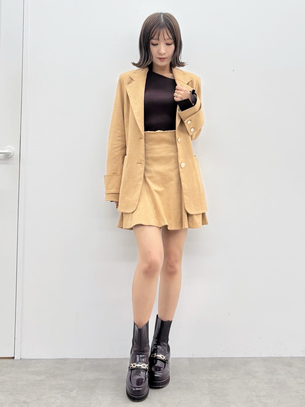 秋の大人可愛いミニ丈コーデ✨ *ジャケット ウエストがシェイプされたジャケットなので羽織るだけでスタイルアップ見えします! *ニット 毎年大人気のパールニットシリーズは今年はワンショルデザイン✨変形リブで伸縮性があり着やすいです! *シューズ 素材が柔らかくつま先がスクエアトゥーなので歩きやすかったです! *スカート ミニ丈のフレアスカートのようなパンツです!少し短めで脚のラインが綺麗に見える丈感です。