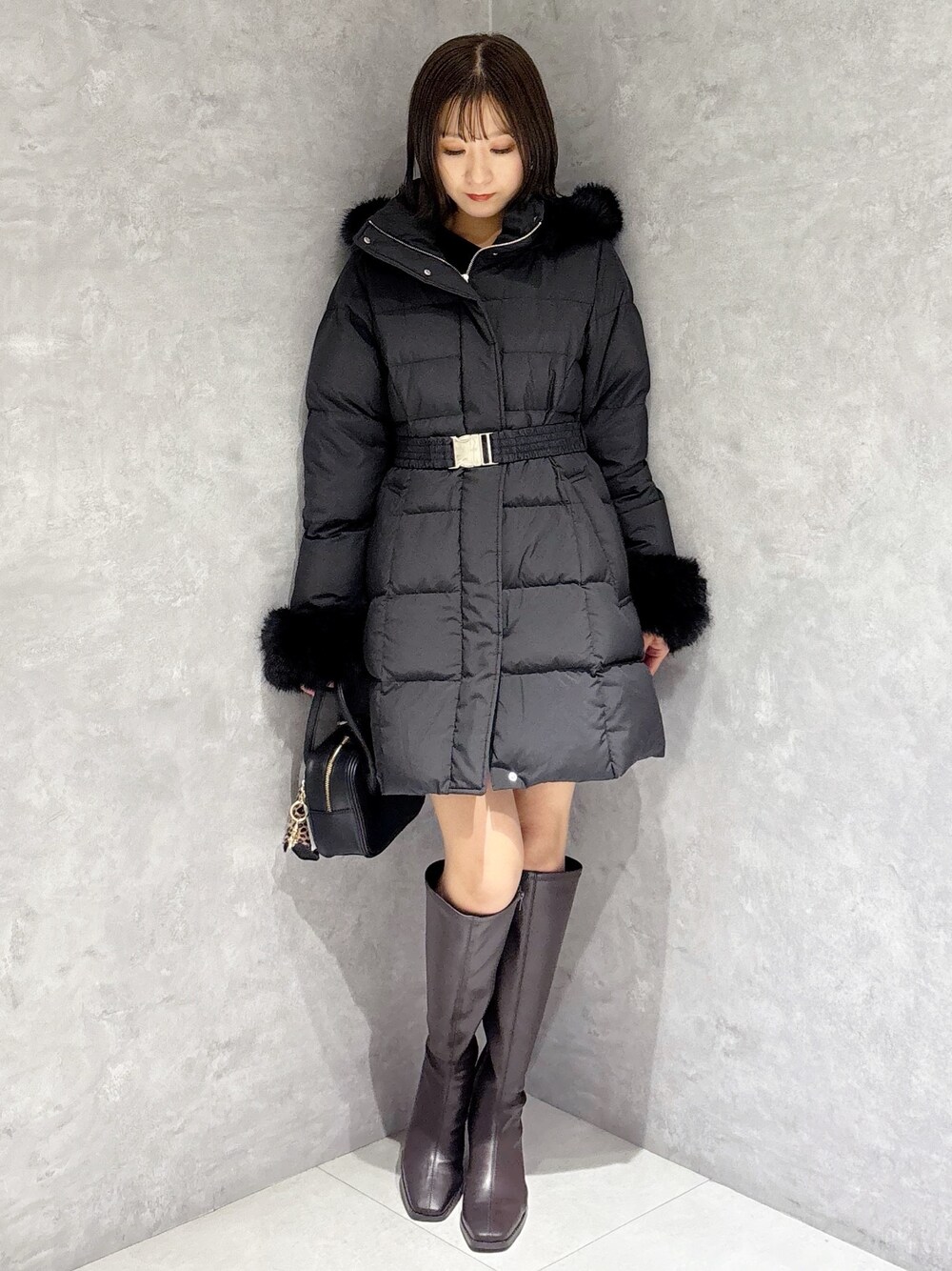 冬の大人可愛いミニ丈コーデ🩷 *ダウン ウエストラインがくびれたスタイルアップ見えする、ダウンコートです! 袖にファーが付いているので手元も暖かくおしゃれ見えします! *スカート インナー付きのミニスカートは履きやすさ◎ *ニット 毎年大人気のパールニットシリーズは今年はワンショルデザイン✨変形リブで伸縮性があり着やすいです!