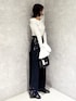 大人可愛いデニムコーデ💕🫧 *ニット 首元袖にフリルのついたトレンドニットは変形リブデザインで着心地◎袖のフリルは取り外し可能なのでシンプルに着こなすことも◎ *デニム 程よいワイド感のあるハイウエストデザインのデニムです!柔らかいデニム素材で履き心地も良く散りばめられたパールが華やか見えします! *シューズ 足幅広め23.5センチ。締め付け感なく楽に履けます。ヒールは高いですが傾斜が緩やかなので長時間はいても疲れません!