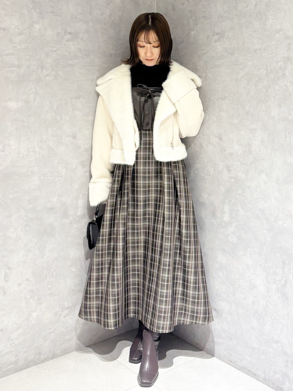 大人可愛い冬のデートコーデ❤️ *アウター 昨年も大人気だったムートンコート✨ 内側がフェイクファーデザインなのでカジュアルになりすぎずに着ていただけます! 短丈なのでハイウエストアイテムとの合わせも◎ *トップス 定番パールニットは袖がフレアデザインで女性らしい一枚になっております! *ワンピース キャミソールデザインのワンピースなので中にニットをレイヤードして着こなしても◎ビスチェデザインなのでウエストラインがキュッとしまって見えます! *シューズ 足幅広め23.5センチ締め付け感なく楽に履けました。