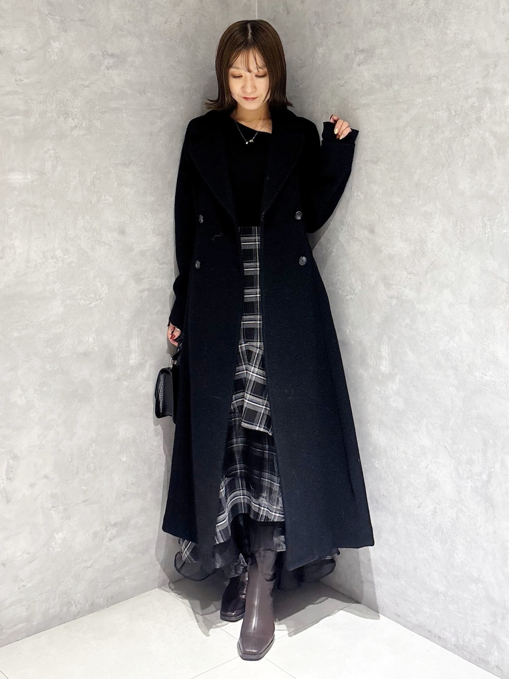 大人可愛い冬のブラックコーデ🩷 *アウター 昨年も大人気のフィットアンドフレアコート! ウールが80%以上入っているので軽くて暖かく、ウエストが絞られているのでスタイルアップして見える今季イチオシアウターです! *スカート イレヘムデザインなので動いた時のシフォンの揺れがとても上品な一枚です。 *ニット 毎年大人気のパールニットシリーズは今年はワンショルデザイン✨変形リブで伸縮性があり着やすいです! *シューズ 足幅広め23.5センチ締め付け感なく楽に履けました。
