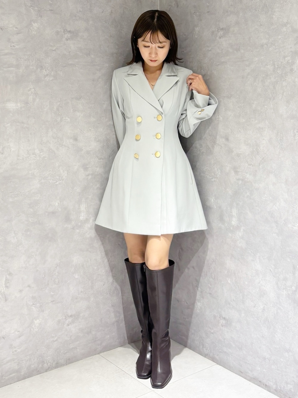 春のオススメデートコーデ❤️ *ワンピース 定番ジャケットワンピースはくびれたデザインなのでウエストラインがキュッと見え、 スタイルアップして見えます! *シューズ フィット感のあるロングブーツで足のラインが綺麗に見えます!