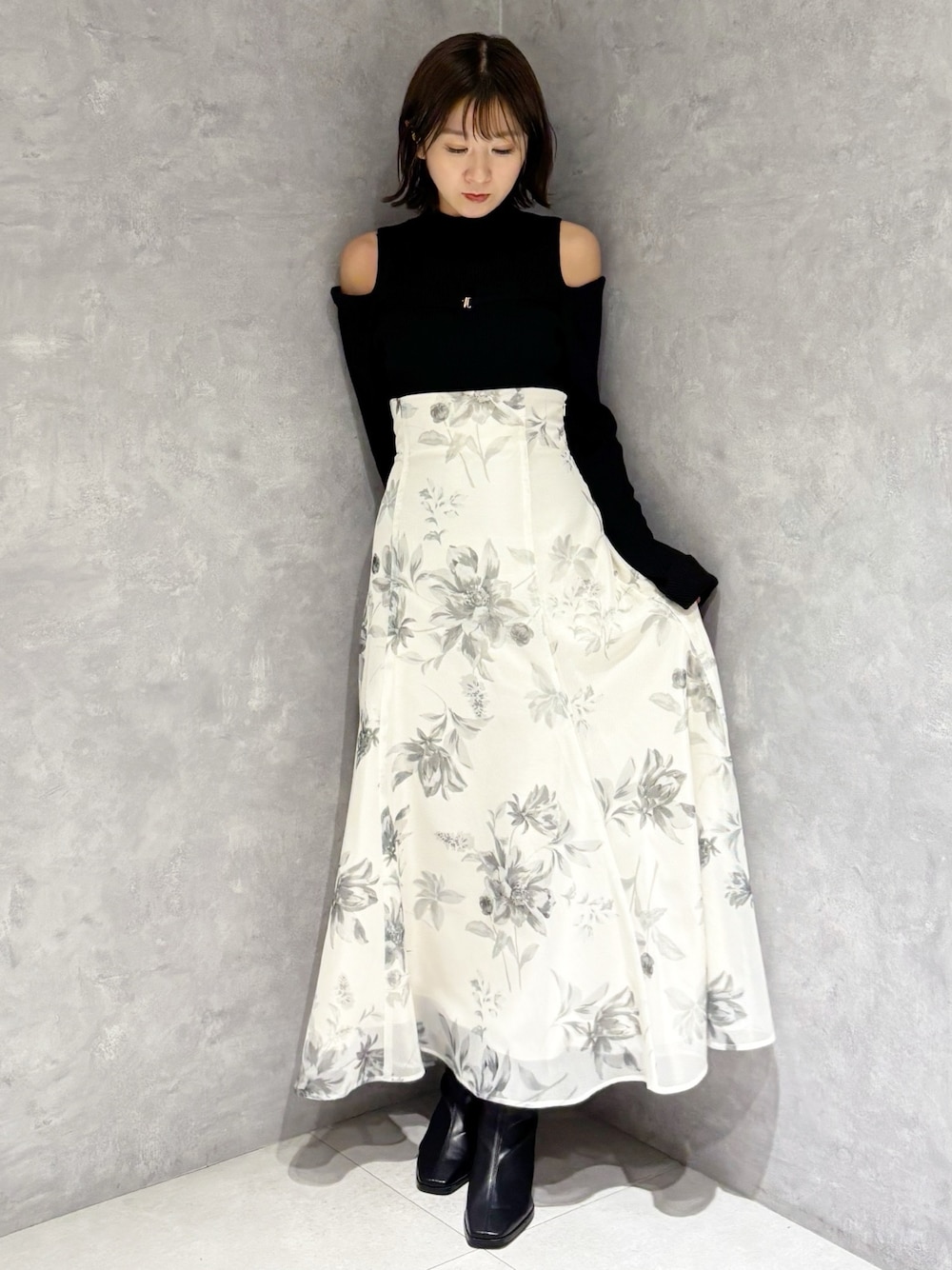 kaho (MERCURYDUO)のスカート「花柄バックレースアップフレアスカート」を使ったコーディネート