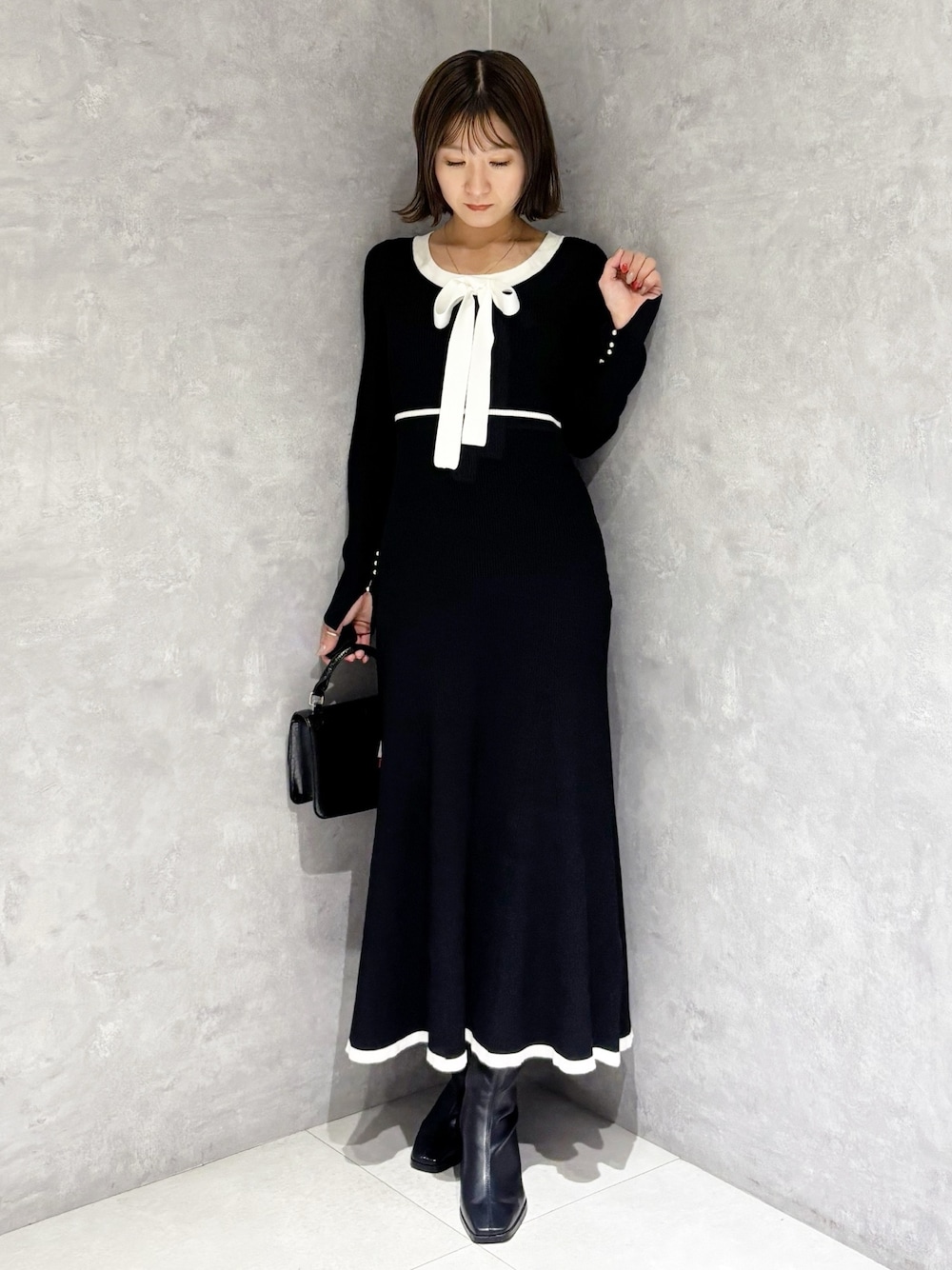 kaho (MERCURYDUO)のワンピース「バイカラーリボンリブニットワンピース」を使ったコーディネート