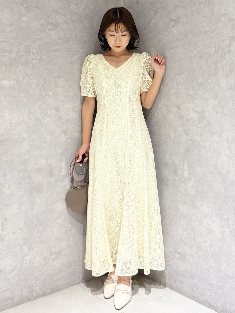 春のオススメワンピースコーデ✨ *ワンピース 総レースの一枚で決まるワンピース! ウエストラインがパイピングでキュッと絞られて見えるデザインなのでスタイルが盛れます! *シューズ 足幅広め23.5㎝ちょうどよく履けました。