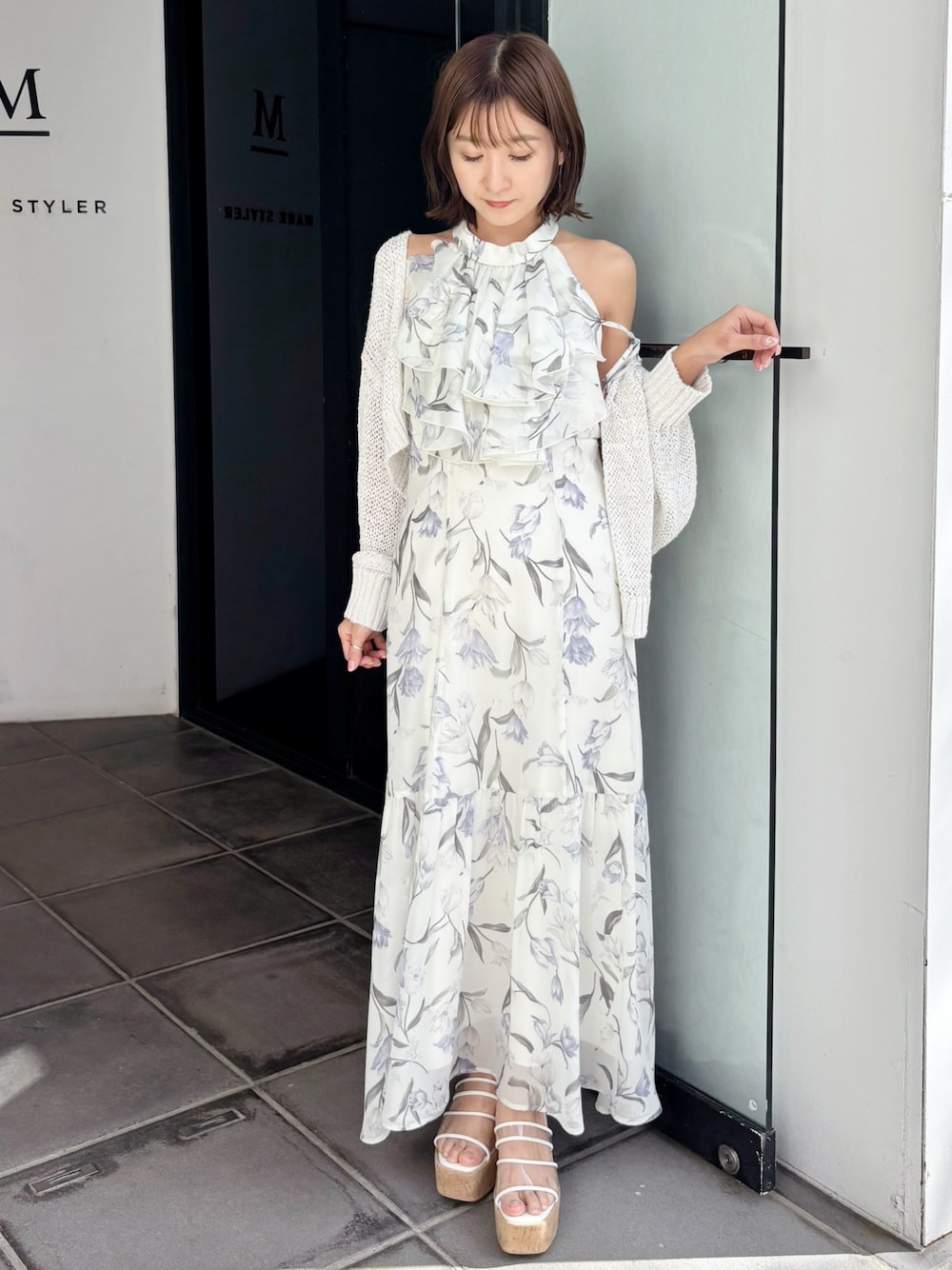 夏のデートにぴったりな🩷 大人可愛いワンピースコーデ✨ *ワンピース アメスリデザイの花柄ワンピース! 大きめ花柄なので大人っぽく着こなせる一枚! 方にストラップがついてるので二の腕カバーも叶います! *カーディガン 定番透かし編みカーディガンはシャリ感がありサラッと夏にぴったり! 短丈なのでワンピースとの相性◯ *シューズ ヒールは高めですが傾斜が緩やかなので楽に履けました。