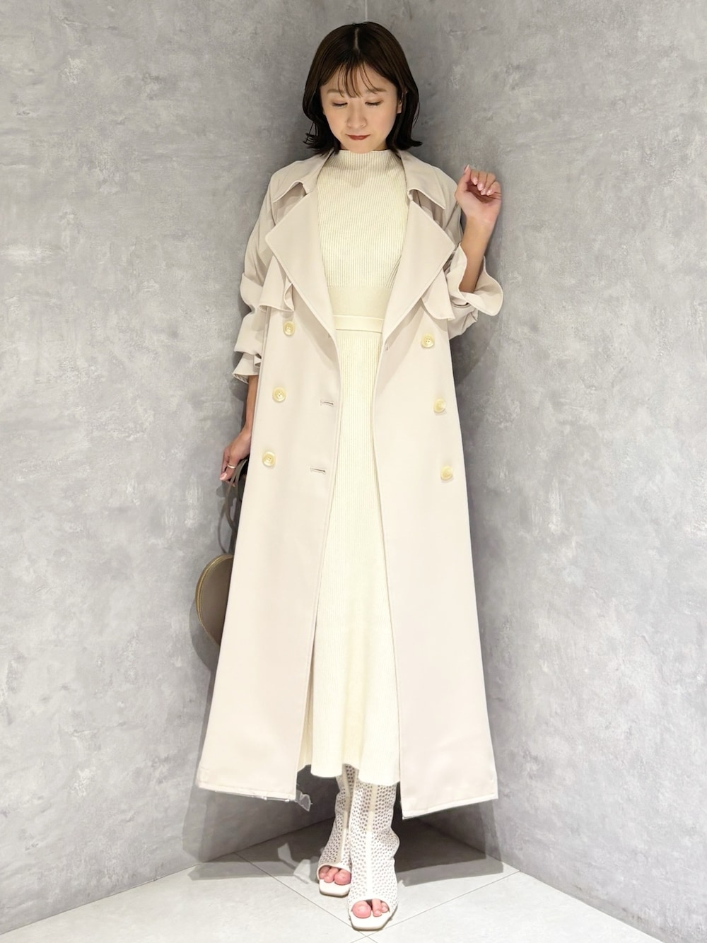 春の大人可愛いワントーンコーデ🩷 *アウター シワになりにくいツイル生地のトレンチコートは柔らかく羽織りやすさ◎ 今年は3サイズ展開なのでお好みの丈感で着こなせます! *ワンピース ウエスト切り替えのタイトなワンピースです!袖が異素材でふわっとしてますがワンピースがタイトなのでバランスよく着ていただけます! *シューズ 傾斜の緩やかなブーツなので楽に履けました!