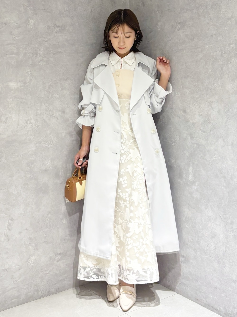 春の大人可愛いカラーコーデ🩷 *アウター シワになりにくいツイル生地のトレンチコートは柔らかく羽織りやすさ◎ 今年は3サイズ展開なのでお好みの丈感で着こなせます! *ワンピース シャツレイヤードの定番人気ワンピースは切り替え高めのデザインなので一枚でスタイルアップして見えます!程よいセミフレアデザインなので広がりすぎないシルエットです! *シューズ 足幅広め23.5センチちょうどよく履けました。