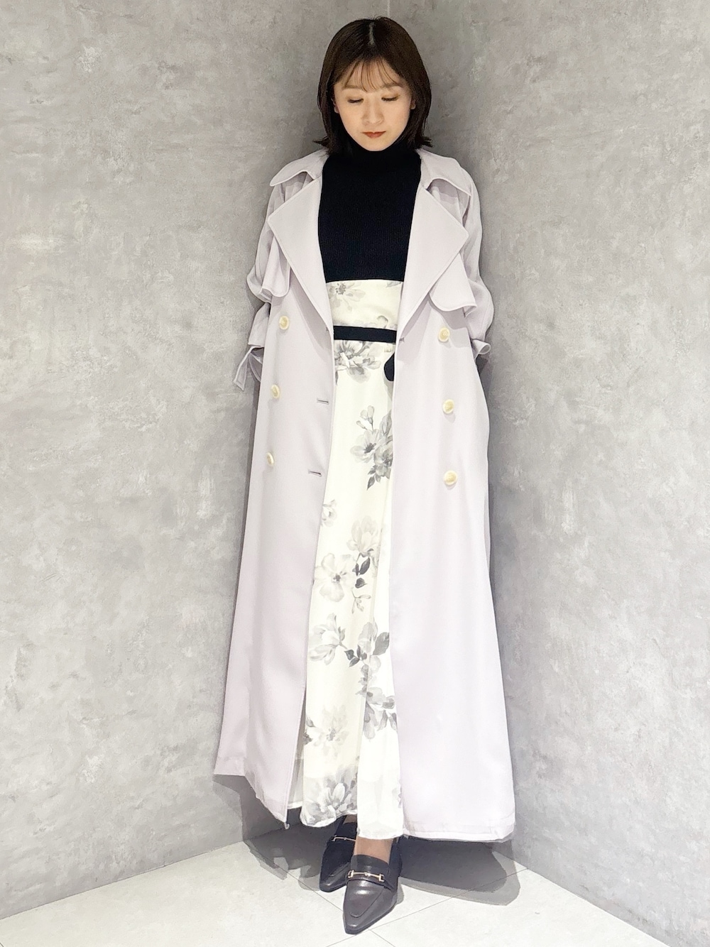 春の大人可愛いカラーコーデ🫧✨ *アウター シワになりにくいツイル生地のトレンチコートは柔らかく羽織りやすさ◎ 今年は3サイズ展開なのでお好みの丈感で着こなせます! *ワンピース 胸下切り替えの定番ドッキングワンピース✨ 花柄が大きめなので大人っぽく華やか見えする一枚です! *シューズ 傾斜が緩やかなので楽に履けました。