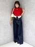 コラボアイテムコーデ🩷 *トップス クロップド丈のニットトップスなのでハイウエストボトムとの相性◎ *デニム 2wayデザインのワイドパンツはウエスト部分で折り返しボリュームを出すことでウエストラインが華奢見えします! *シューズ 傾斜が緩やかなので楽に履けました。