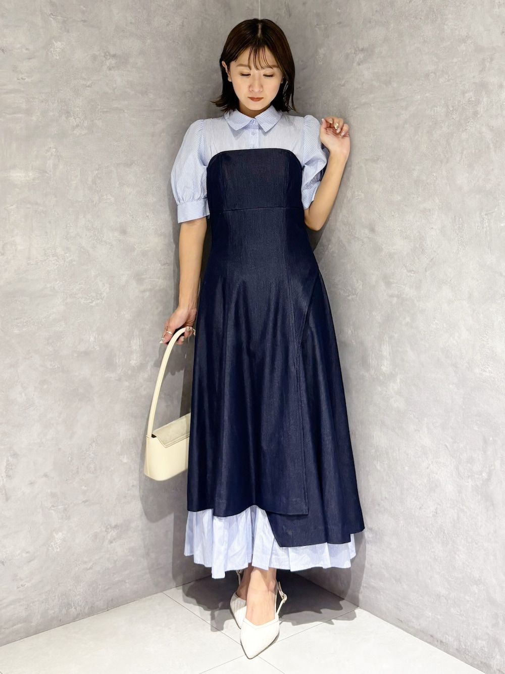 春のオススメワンピースコーデ🫧 *ワンピース シャツドッキングレイヤードワンピースなので一枚で決まるワンピース✨袖のパワショルデザインとレイヤードシャツのヒラっと感がより女性らしく見せてくれます! *シューズ 傾斜が緩やかなので楽に履けました。