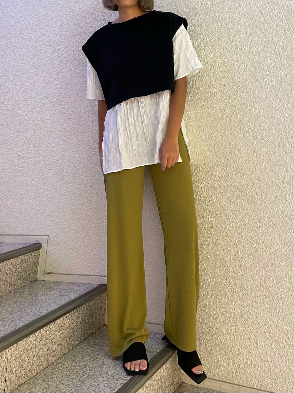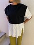 1枚でオシャレなレイヤードトップスに、カラーパンツを合わせてお友達とのお買い物コーデをテーマにしたスタイリングを組んでみました❤︎ トップスはベストレイヤード風のデザインになっていて、インナー部分はシワ加工の布帛を使用しているので、清涼感があり真夏日でも着やすく、モード感も出てくれるアイテム! 着丈は腰回りをカバー出来るヒップ丈なので着痩せ効果も抜群です◎ 一緒に合わせたパンツは、ウエストがゴムになっているので着脱、着心地ともにとっても楽チン♪ 太めなストレートシルエットなので脚のラインもカバーしてくれる優れ物です!! 160cmの私で3cmほど引き摺るくらいの長さなので、小柄な方から高身長の方まで靴次第で着回し頂けます❤︎ 靴はトレンドのスクエアトゥデザインのサンダルを合わせてみました♪ 5.5cmヒールで安定感があり、クッション性も高くバンド部分も柔らかいポリエステル生地を使用しているので、長時間歩くお買い物シーンにもピッタリです!! 是非チェックしてみて下さい❤︎