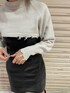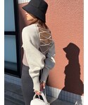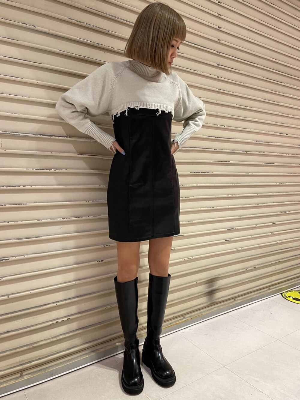 今季トレンドのレイヤードスタイルでデートコーデを組んでみました❤︎ レザー素材のワンピースは素材が柔らかいので着用しやすく、切り替え位置が高いのでスタイルアップ効果も抜群◎ ストラップはキャミソール型でアジャスターも付いているので着丈のバランスも取りやすく、インナーにシアーのトップスやシャツをレイヤードするスタイリングは勿論、私のように上からニットやトレーナーを重ねるスタイリングもおすすめです♫ 一緒に合わせたトップスは、スーパークロップド丈のクラッシュニット☺︎ クロップド丈なので目線が上にいく事でスタイルをより良く魅せてくれます! また、後ろのレースアップデザインが目を惹き、袖や裾にあしらわれたクラッシュデザインが一枚でオシャレ度を一気に上げてくれるアイテム♪ ブーツは今、店頭でも大人気のミドルブーツ❤︎ 足元にボリュームが出て、筒部分のサイズも少しゆとりがあるデザインなので、脚を真っ直ぐ魅せてくれるのがポイントです! 是非トータルコーデでチェックしてみて下さい☺︎