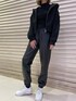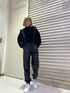 朝晩とお昼間で寒暖差が出てきた初秋の通勤コーデ☺︎❤︎ ショート丈のフーディは、ボンディング素材を使用しているのでハリがあり着心地が良いのは勿論、カジュアル過ぎない印象で着用頂けます! 着丈が短い分、視線が上に上がるのでスタイルアップ効果もあり、身頃に切り替えが入っているので肩幅もスッキリ魅せてくれるんです♪ 腕周り、身頃共にワイドな作りになっているのでインナーも着込みやすく季節の変わり目にピッタリ❤︎ インナーに合わせたトップスは縦リブ仕様で着痩せ効果バツグンのショートニット◎ ネック、裾、袖にあしらわれたクラッシュデザインがポイントのニットなので、羽織りを脱いだ際にもオシャレに魅せてくれます♫ 一緒に合わせたパンツは去年の型ですが、今季も素材違いのジャガードパンツが入荷しているので、詳細は私の2個前の投稿をチェックしてみて下さいね❤︎ オールブラックのコーデで一見シンプルですが、素材違いのアイテムなのでオシャレ映え間違いなしなので、是非参考にして下さい☺︎‼︎
