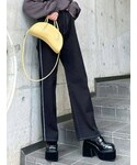 形が絶妙でお洒落なデニムをモノトーンコーデでモードにまとめてみました❤︎ EMODAと言えばハイウエストのスキニーなイメージが強いと思いますが、実はスキニー以外の型もこだわりが詰まってるんです!! このデニムは脇線を敢えて表に出してデニム地とは異なるカラー糸で縫われているので、履いた時のメリハリが出て脚のラインをキレイに魅せてくれます♪ お尻のポケットも同様の縫い糸を使用しているので、お尻がキュッと上がって見えるのもポイント! シルエットはワイドですが太すぎない形なので脚のラインは拾わずに、ボリュームのあるトップスで合わせてもルーズに見えないので、私はハリ感のあるニットを合わましたが、タイトな物からオーバーシルエットなトップスまで幅広く合わせてスタイリング頂けます◎ ポイントで合わせたベルトはEMODA定番のレザーロングベルト! ベルト穴が無いデザインなのでどんなアイテムにも合わせ易く、金具も黒で本革を使用しているので高見えしてくれる優秀アイテム♪ スタッフ全員愛用しているほど信憑性も高いベルトです!笑 一緒に合わせたシューズは今季トレンドのボリュームソールシューズ!! 見た目のボリューム感からは想像出来ないほど軽く、長時間のお出掛けにもピッタリです❤︎ ヒール6.5cmとローヒールではありますが、足元にボリュームが出てくれるので脚をキレイに魅せてくれます◎ 是非コーディネートでチェックしてみて下さい♪