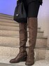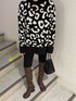 一枚で映えるニットを大人っぽくスタイリングしてみました☺︎‼︎ 毎年大人気のレオパード柄ニットですが、今季は柄部分をループ状の糸を使用し編まれているので、立体的に見えて人と差を付けられる一枚に♫ さらに、ネックや裾にはクラッシュ加工が施されているのでオシャレポイントも満点◎ 160cmでお尻がすっぽり隠れる着丈なので裾はINでもOUTでも、ボトムはショートボトムでワンピース風にも、様々なスタイリングが楽しめます❤︎ 一緒に合わせたボトムはEMODA定番のNUDE DENIM!! 履き心地に特化したデニムで、まるで履いていないかのように柔らかいのでストレスフリーで着用頂けます♪ また、ハイウエストデザインなのでショート丈から長めなトップスまで、幅広く合わせられる万能デニムです☺︎ ブーツは3つ前のワンピーススタイルにも合わせたロングブーツ!! モノトーンコーデなので敢えてブラウンを合わせる事で大人っぽい印象になるようにしました❤︎ 膝上丈なので膝下を長く見せてくれて、存在感もあるデザインなので是非コーディネートでチェックしてみて下さい♫