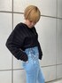 今季イチオシのデニムでコーディネートを組んでみました☺︎❤︎ ウエスト部分にあしらわれたレースアップデザインが目を惹くのは勿論、切り替えが斜めに入っている事でウエストがくびれて見え、着痩せ効果バツグンです◎ また、レースアップは調節可能なので程良く自分のウエストに合わせて着用頂けます♪ 一緒に合わせたニットは袖のたぽっとしたシルエットが女性らしくて可愛いデザイン! 編地に立体感のあるデザインなのでアウターのインナーとしても、春先には一枚で着用でも主役になってくれます☺︎ 首元広めなデザインでデコルテをキレイに魅せてくれるので、顔周りがスッキリとした印象になるのも嬉しいポイント♫ 襟シャツなどとのレイヤードや、肩を少し落としてワンショルダーでの着用もオススメなので是非チェックしてみて下さい❤︎