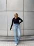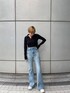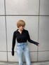 今季トレンドのクロップ丈のアイテムを使ったアメカジコーデ☺︎❤︎ トップスはコンパクトなサイズ感ですが、程よくフィットしてくれるのでボディラインをキレイに魅せてくれます♪ ロングスリーブなので女性らしく着用頂けるのも嬉しいポイント◎ シンプルなデザインで、ハイウエストボトムであれば万能に合わせられるアイテムなので、クローゼットにあるとつい着たくなる一枚です♫ 一緒に合わせたデニムは、ヴィンテージライクな加工がポイントのフレアジーンズ! 160cmの身長でスニーカーでも擦らずに履けるフルレングス丈なので、膝下を長く魅せてくれて脚長効果もバツグンです◎ 合わせるトップスや靴で印象がガラッと変わるので、是非チェックしてみて下さい❤︎